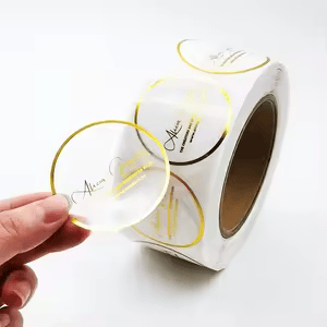 A hot stamped label sticker is a premium label where a metallic or colored foil is permanently heat-pressed onto the material, creating a luxurious, shiny, and durable finish. It’s known for its high-end look (like gold or silver), resistance to scratching, and tactile feel, making it a popular choice for luxury products, cosmetics, and wine bottles.